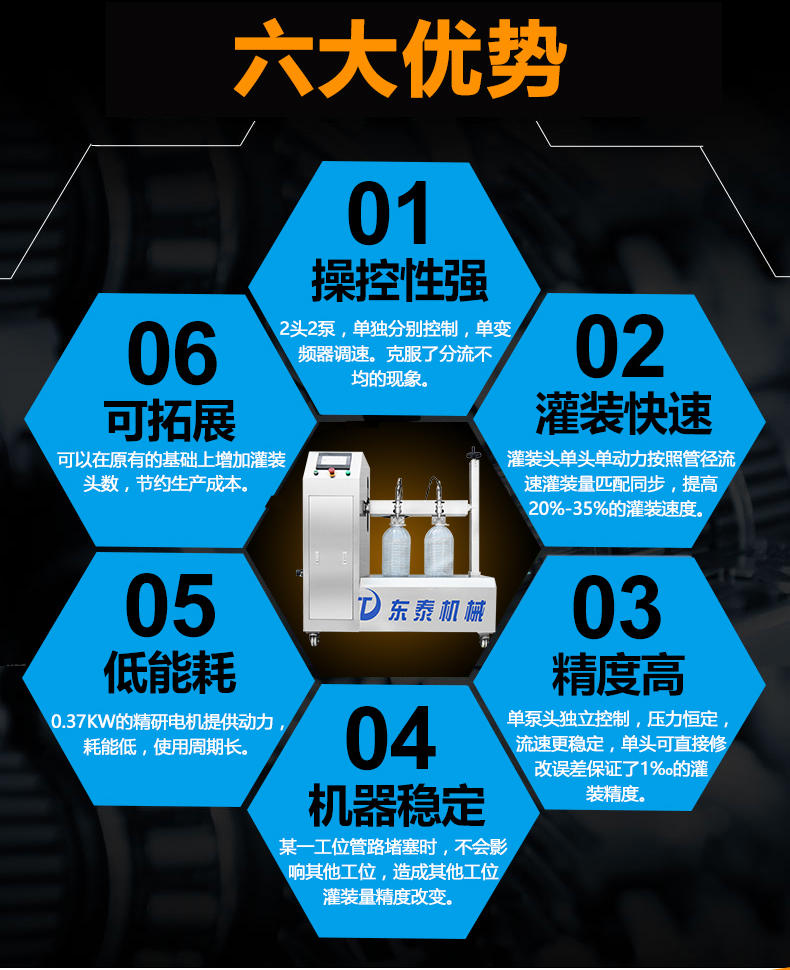 裝范圍廣、速度快、精度高—–1-20L大容量灌裝范圍,單頭單泵單變頻控制,灌裝速度快,壓力恒定,流量穩定,單頭可直接修改誤差,保證了千分之一的精度