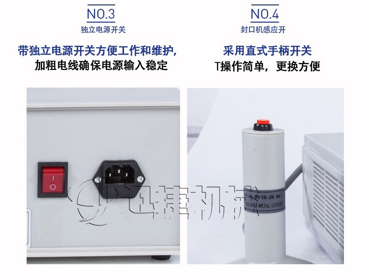 小型鋁箔封口機(jī)為鋁箔封口設(shè)計(jì)精心制造,小型鋁箔封口機(jī)為中高檔型產(chǎn)品,功率可調(diào),數(shù)字顯示,風(fēng)冷連續(xù)式工作,高效高速,可移動式,方便靈活使用。小型鋁箔封口機(jī)是利用電磁感應(yīng)的原理,將瓶口上的鋁箔片瞬間產(chǎn)生高熱,然后熔合在瓶口上,使達(dá)到封口的功能。電磁感應(yīng)所封的鋁箔能有效的防止瓶裝物品溢出、受潮和霉變,延長所封物品的保存期,起到延長物品保存周期的目的。封口容器的材質(zhì)可以是聚乙(PE)、聚丙烯(PP)、聚酯(PET)、聚苯乙烯(PS)、ABS以及玻璃等,適用于制藥、食品、化工、化妝品等行業(yè)中塑料瓶(材料為PE、PP、PS、PVC、PET)和玻璃瓶的封口。