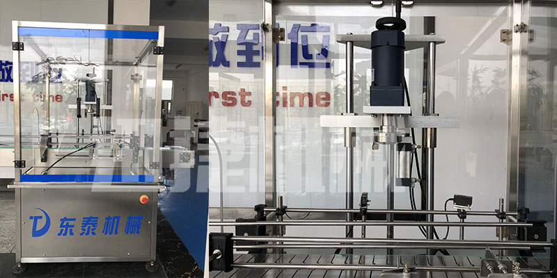 全自動單頭旋蓋機(jī) 可與理瓶機(jī)、灌裝機(jī)、貼標(biāo)機(jī)電磁鋁箔封口機(jī)等設(shè)備相聯(lián)動,組成全自動瓶裝生產(chǎn)線。兼容性強(qiáng)根據(jù)客戶桶蓋不同,為了達(dá)到最佳旋蓋效果,旋蓋頭可能會做相應(yīng)調(diào)整如下,更換瓶子品種方便快捷光電一體化,智能化程度高,具有無瓶,無蓋不工作,確保生產(chǎn)的連續(xù)性和壓蓋準(zhǔn)確性。 直線式設(shè)計(jì),組成流水線方便美觀。采用強(qiáng)電磁左旋蓋扭力器,有效解決了傳統(tǒng)機(jī)械摩擦片在旋蓋時(shí)緊時(shí)松的弊病 ,該機(jī)操作簡單只需根據(jù)瓶蓋更換旋蓋頭就可以是非常經(jīng)濟(jì)適用的一款旋蓋設(shè)備,符合GMP要求。